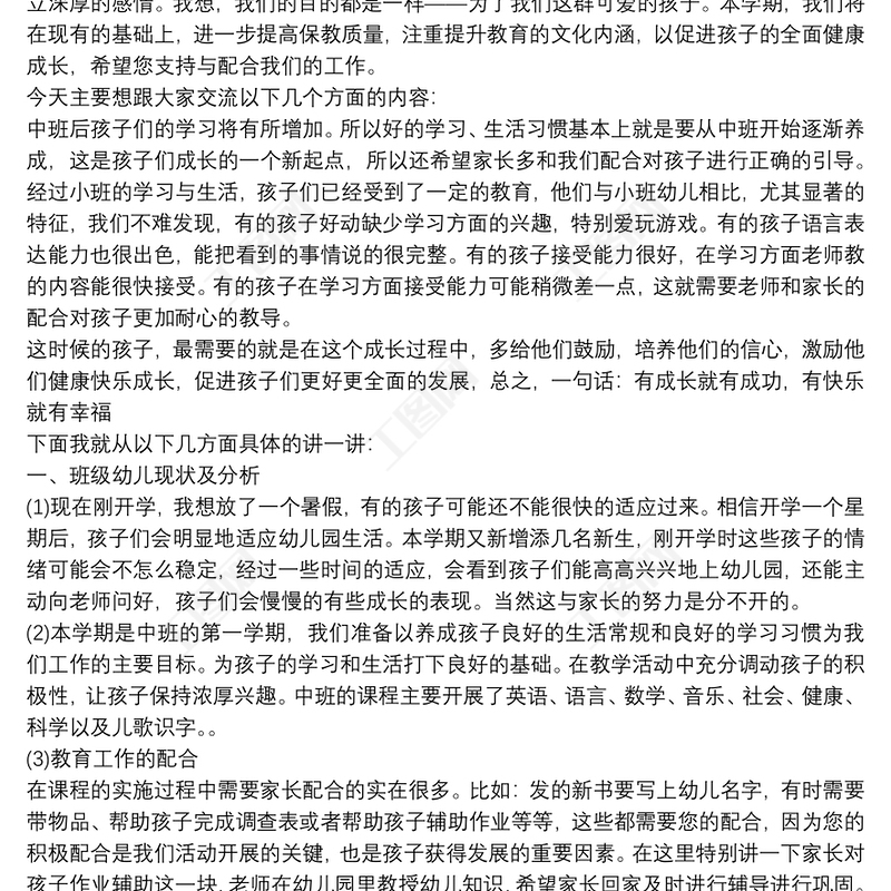 工圖網(wǎng)提供【中班家長會發(fā)言稿2018】中班家長會教師發(fā)言稿范文供會員免費下載。更多精彩黨課PPT素材,盡在工圖網(wǎng)。