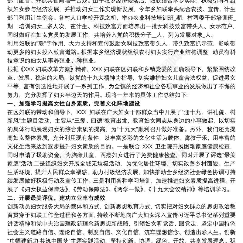 2021鄉(xiāng)鎮(zhèn)婦聯(lián)工作總結(jié)