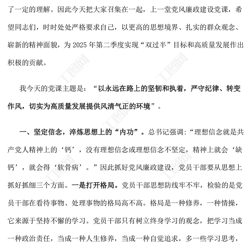 工圖網(wǎng)提供嚴(yán)守紀(jì)律轉(zhuǎn)變作風(fēng)PPT為高質(zhì)量發(fā)展提供風(fēng)清氣正的環(huán)境專題黨課(講稿)供會員免費(fèi)下載。更多精彩黨課PPT素材,盡在工圖網(wǎng)。