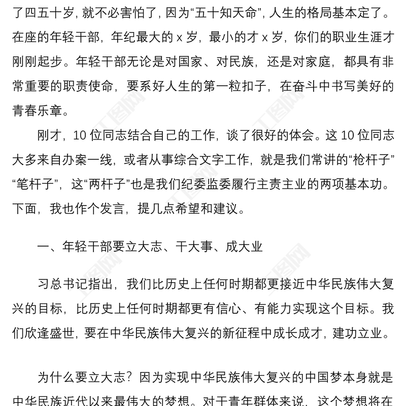 在紀委監(jiān)委年輕干部座談會上的講話范文領導講話 Array