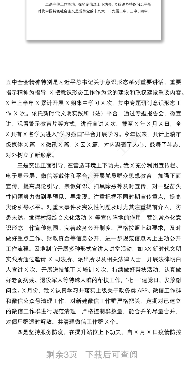 2021年意識形態(tài)工作學(xué)習(xí)材料2021黨支部書記意識形態(tài)工作述職報告2021年意識形態(tài)風(fēng)險點(diǎn)研判清單2021建黨100周年意識形態(tài)領(lǐng)域風(fēng)險排查化解工作報告中學(xué)2021年意識形態(tài)工作總結(jié)2021在慶祝中國共產(chǎn)黨成立一百周年大會上的講話讀后感2022辦公室意識形態(tài)領(lǐng)域形式分析研判材料2022交警意識形態(tài)領(lǐng)域風(fēng)險分析研判報告2021婦聯(lián)意識形態(tài)領(lǐng)域形勢分析2021年意識形態(tài)第一季度工作總結(jié)鄉(xiāng)鎮(zhèn)2022年第二季度意識形態(tài)領(lǐng)域風(fēng)險分析研判報告消防大隊2021年意識形態(tài)工作總結(jié)2023主題教育自查情況分析研判會議