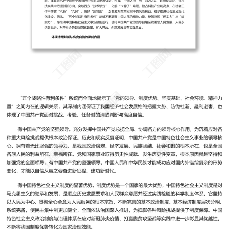 工圖網(wǎng)提供深刻把握“五個(gè)戰(zhàn)略性有利條件”的重要內(nèi)涵與科學(xué)指引 深入學(xué)習(xí)“五個(gè)戰(zhàn)略性有利條件”的重大論斷專題黨課演講稿供會(huì)員免費(fèi)下載。更多精彩黨課PPT素材,盡在工圖網(wǎng)。