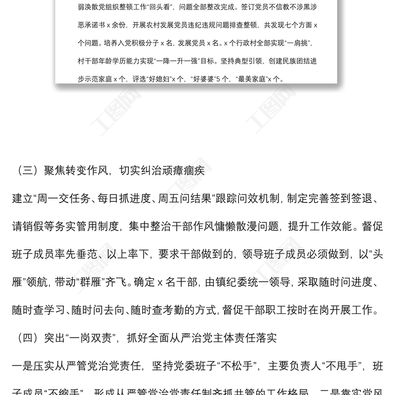 工圖網(wǎng)提供鎮(zhèn)關(guān)于2021年履行全面從嚴治黨主體責(zé)任暨書記第一責(zé)任人責(zé)任情況的報告供會員免費下載。更多精彩黨課PPT素材,盡在工圖網(wǎng)。
