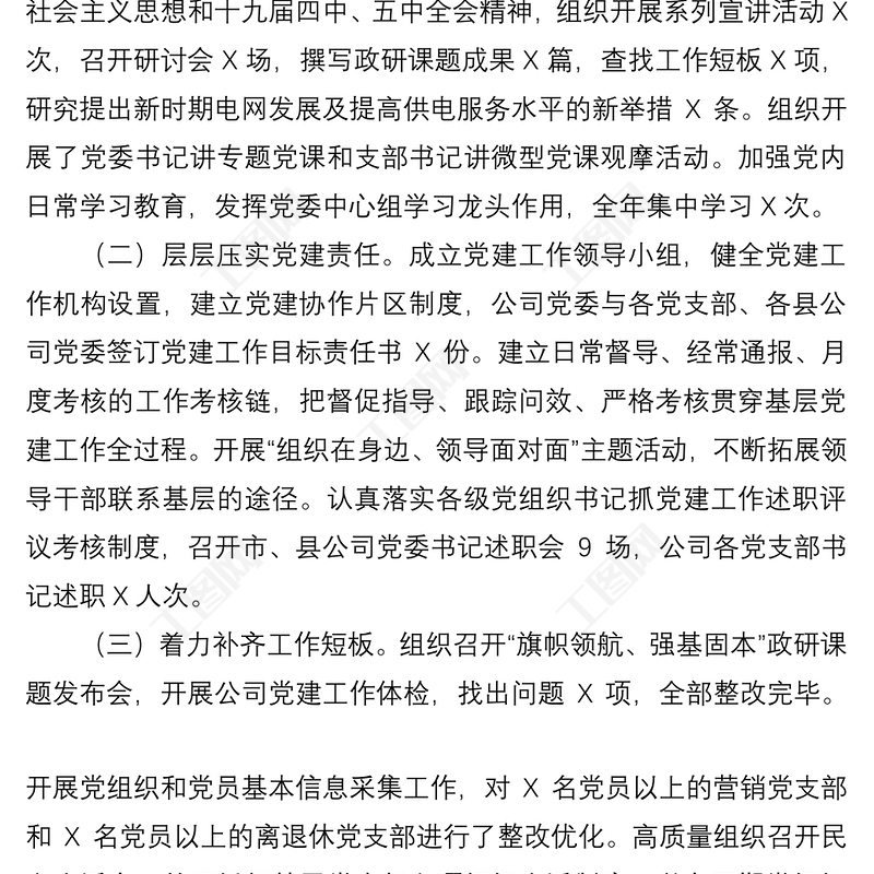 工圖網(wǎng)提供2021供電公司黨支部書記抓基層黨建工作述職報告供會員免費下載。更多精彩黨課PPT素材,盡在工圖網(wǎng)。