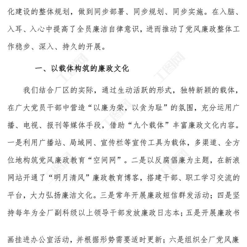 工圖網(wǎng)提供國有企業(yè)廉政文化建設(shè)先進(jìn)單位申報材料供會員免費下載。更多精彩黨課PPT素材,盡在工圖網(wǎng)。