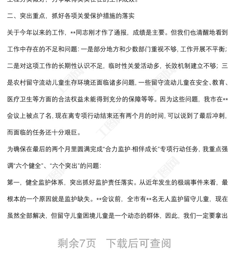 > 領(lǐng)導(dǎo)講話(huà) > 在2022年市農(nóng)村留守兒童困境兒童關(guān)愛(ài)救助保護(hù)工作領(lǐng)導(dǎo)小組會(huì)議上的講話(huà).DOCX 【圖片、文字、動(dòng)畫(huà)均可編輯】