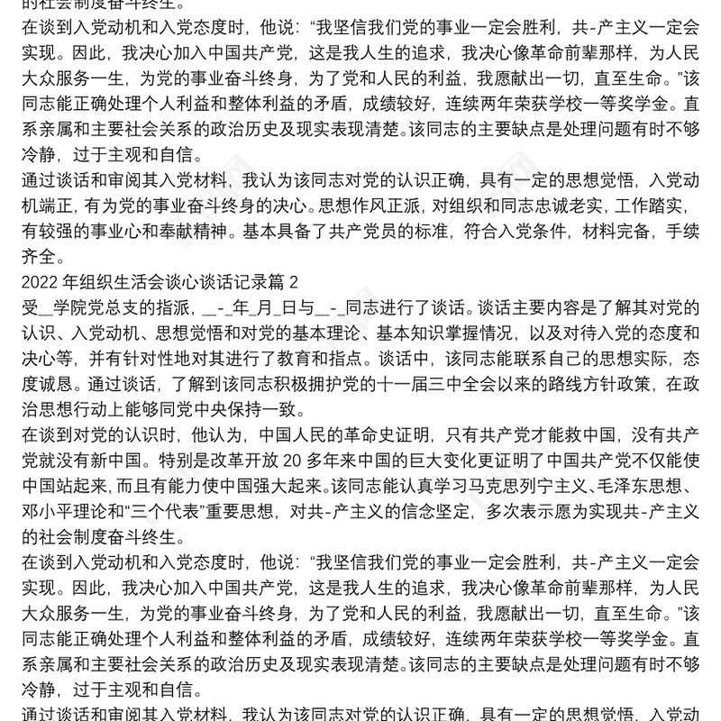 2022年組織生活會(huì)談心談話記錄范文(通用11篇)
