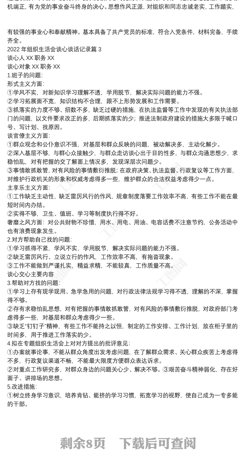 工圖網(wǎng)提供2022年組織生活會(huì)談心談話記錄范文(通用11篇)供會(huì)員免費(fèi)下載。更多精彩黨課PPT素材,盡在工圖網(wǎng)。