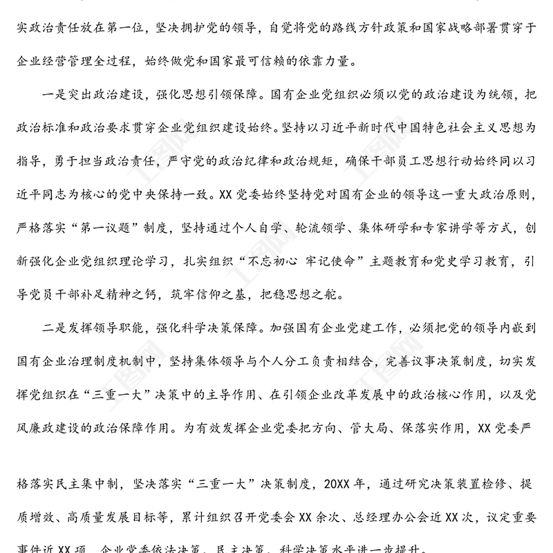 > 經(jīng)驗(yàn)事跡 > 國企黨建經(jīng)驗(yàn)交流材料:突出黨建優(yōu)勢 引領(lǐng)企業(yè)發(fā)展.DOCX 【圖片、文字、動畫均可編輯】