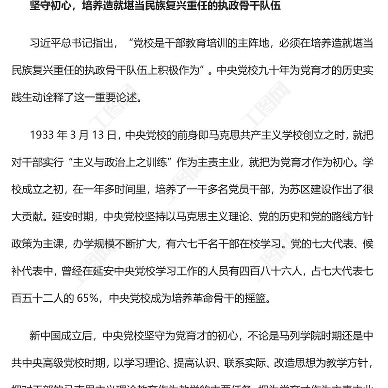 > 黨課講稿 > 2023踐行好為黨育才的黨校初心PPT精美大氣風(fēng)黨校建校90周年暨2023年春季學(xué)期開學(xué)典禮上重要講話專題黨課課件模板(講稿).DOCX 【圖片、文字、動畫均可編輯】
