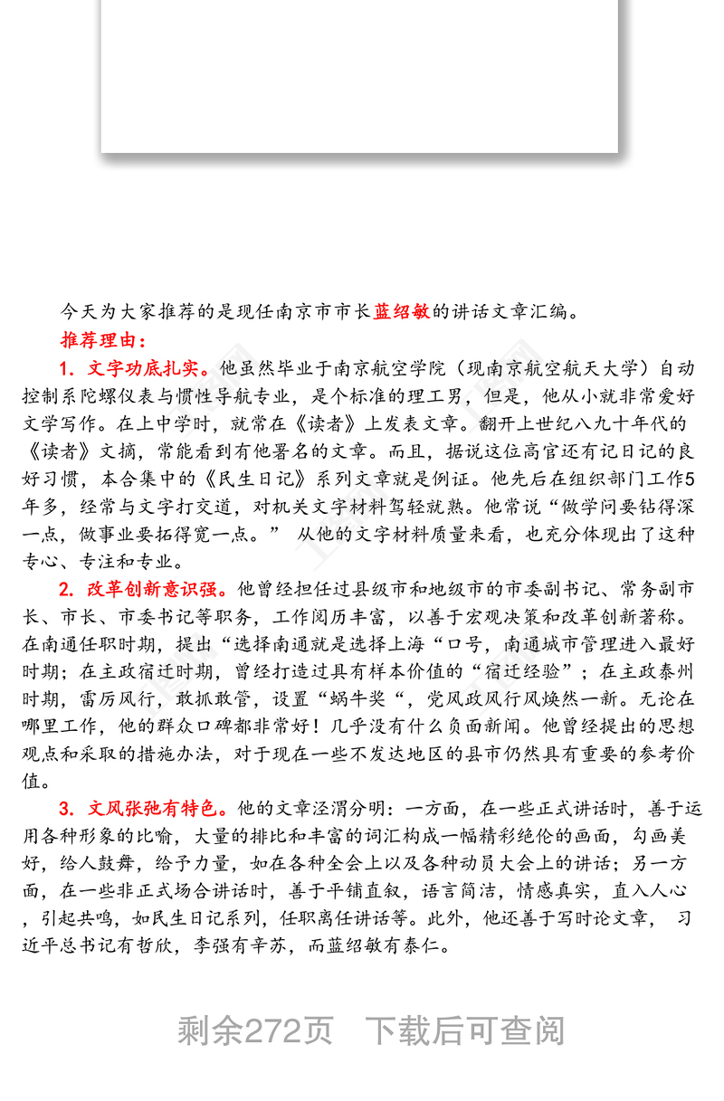 藍紹敏講話文章匯編(一)材料匯編,材料匯編,公文范例,領(lǐng)導述職報告,機關(guān)公文寫作 Array