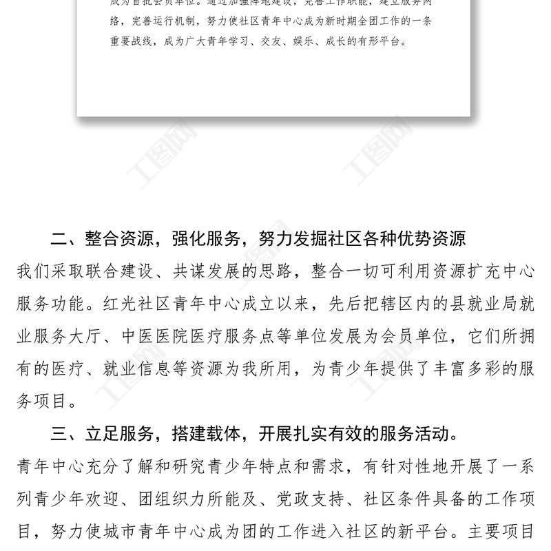 工圖網(wǎng)提供2021縣城市青年中心建設(shè)工作經(jīng)驗(yàn)材料供會(huì)員免費(fèi)下載。更多精彩黨課PPT素材,盡在工圖網(wǎng)。