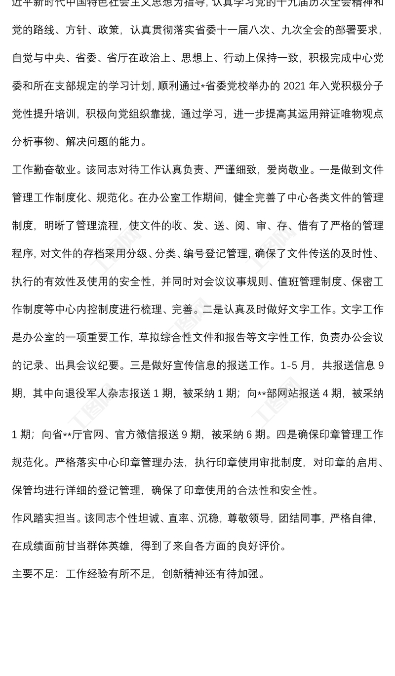 工圖網(wǎng)提供辦公室工作人員現(xiàn)實表現(xiàn)材料供會員免費下載。更多精彩黨課PPT素材,盡在工圖網(wǎng)。
