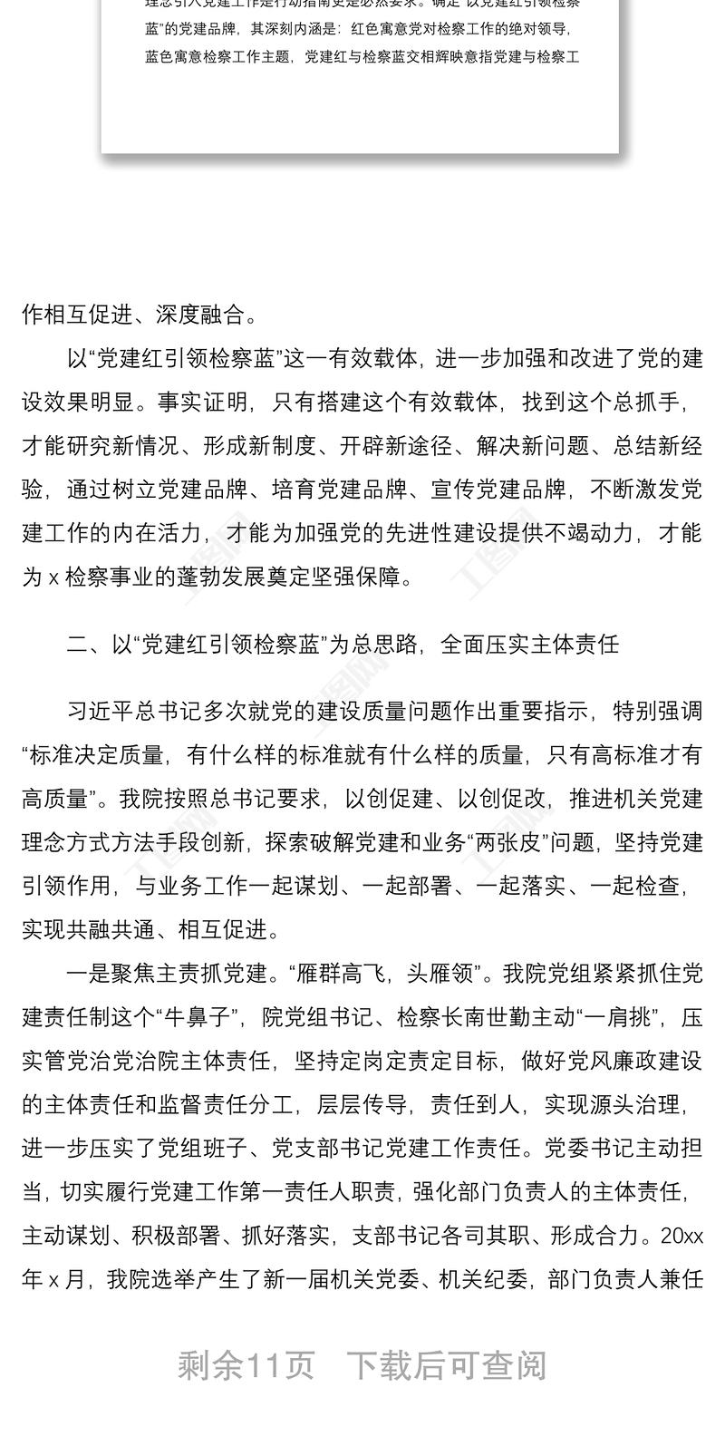 工圖網(wǎng)提供2021“黨建紅引領(lǐng)檢察藍(lán)”黨建品牌總結(jié)材料供會員免費下載。更多精彩黨課PPT素材,盡在工圖網(wǎng)。