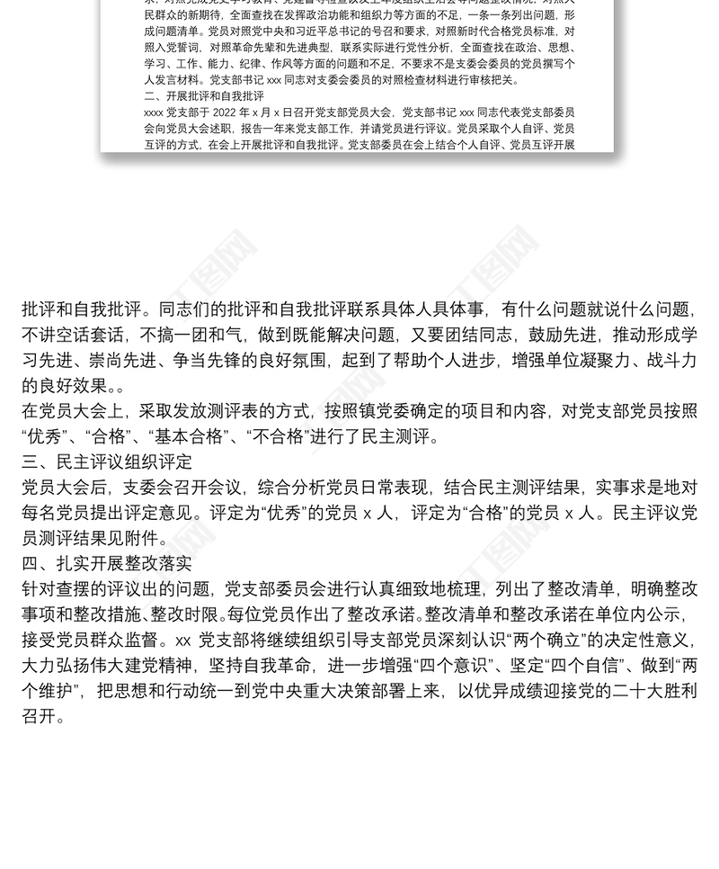首頁 > WORD文檔 > 組織生活會 > 關于召開2021年度基層黨組織組織生活會和開展民主評議黨員情況的匯報.DOCX 【圖片、文字、動畫均可編輯】