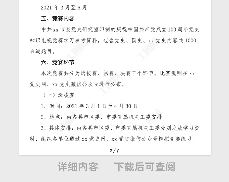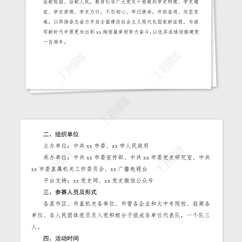 工圖網(wǎng)提供3篇100周年知識(shí)競(jìng)賽活動(dòng)方案范文3篇市級(jí)鄉(xiāng)鎮(zhèn)xx局工作方案供會(huì)員免費(fèi)下載。更多精彩黨課PPT素材,盡在工圖網(wǎng)。