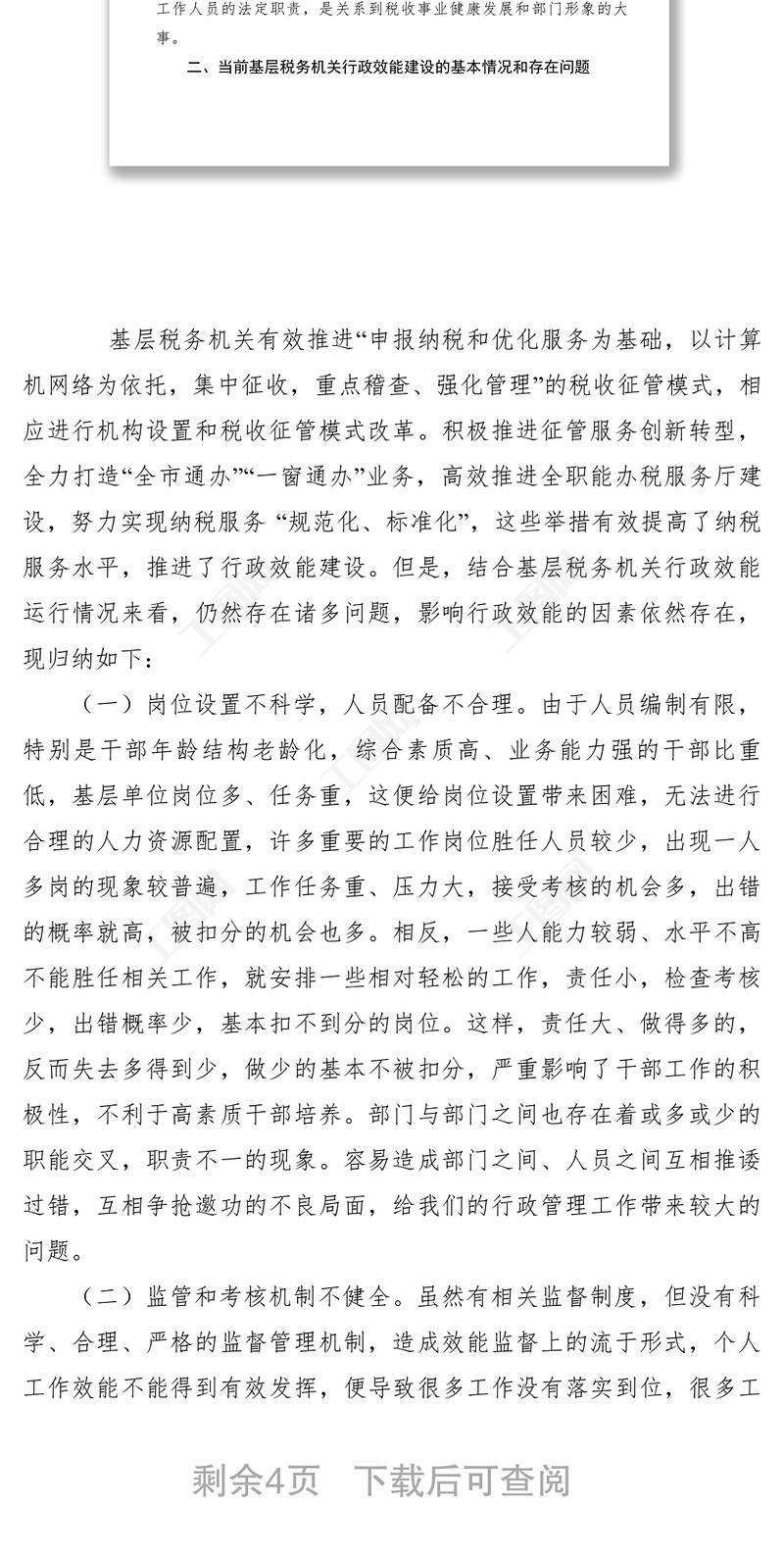 > 報(bào)告 > 2021【調(diào)研報(bào)告】稅務(wù)調(diào)研文章:關(guān)于提高稅務(wù)行政效能的思考與建議.DOCX 【圖片、文字、動畫均可編輯】