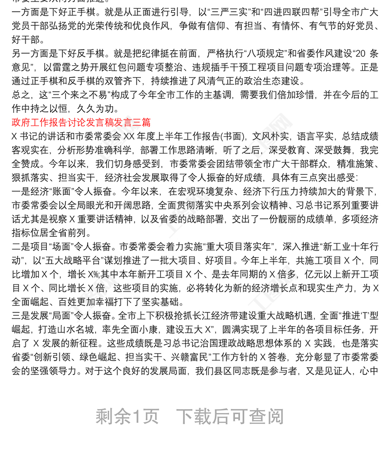 政府工作報告討論發(fā)言稿發(fā)言三篇 Array