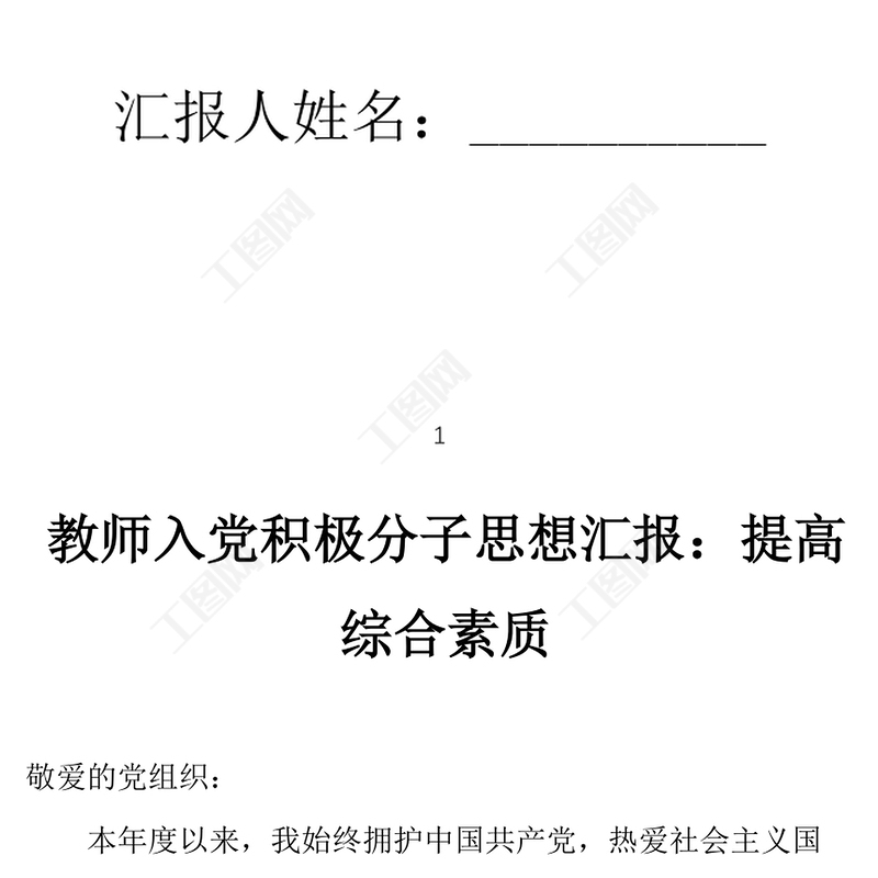 > 思想?yún)R報(bào) > 2021年教師入黨積極分子思想?yún)R報(bào):提高綜合素質(zhì).DOCX 【圖片、文字、動(dòng)畫(huà)均可編輯】