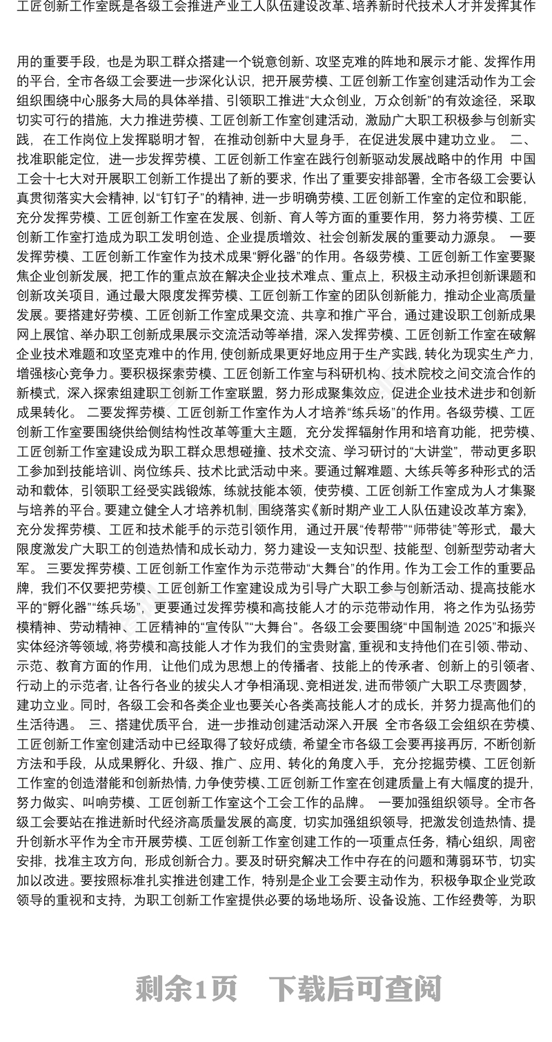 在20**年勞模創(chuàng)新工作室創(chuàng)建工作經(jīng)驗(yàn)交流會上的講話 Array
