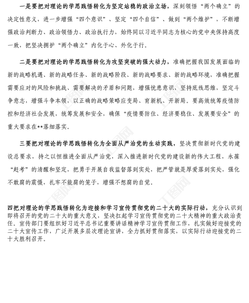 工圖網(wǎng)提供學(xué)習(xí)研討班重要講話交流發(fā)言提綱供會員免費(fèi)下載。更多精彩黨課PPT素材,盡在工圖網(wǎng)。