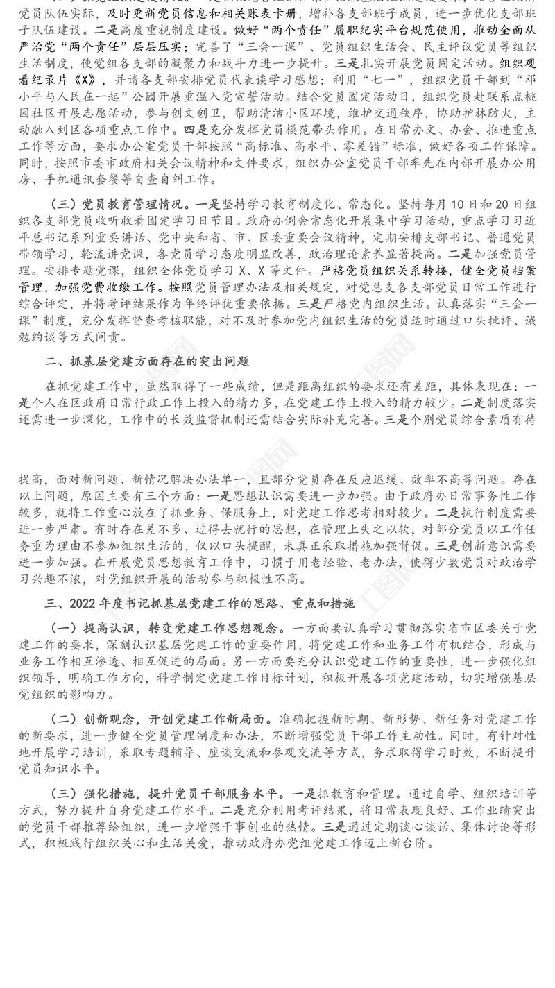 工圖網(wǎng)提供區(qū)政府辦黨總支書記2021年度書記抓基層黨建工作述職報(bào)告供會(huì)員免費(fèi)下載。更多精彩黨課PPT素材,盡在工圖網(wǎng)。