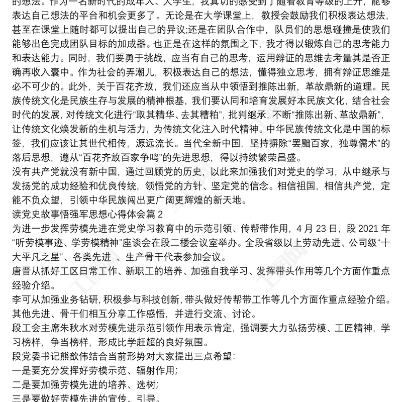工圖網(wǎng)提供讀黨史故事悟強(qiáng)軍思想心得體會(huì)10篇供會(huì)員免費(fèi)下載。更多精彩黨課PPT素材,盡在工圖網(wǎng)。