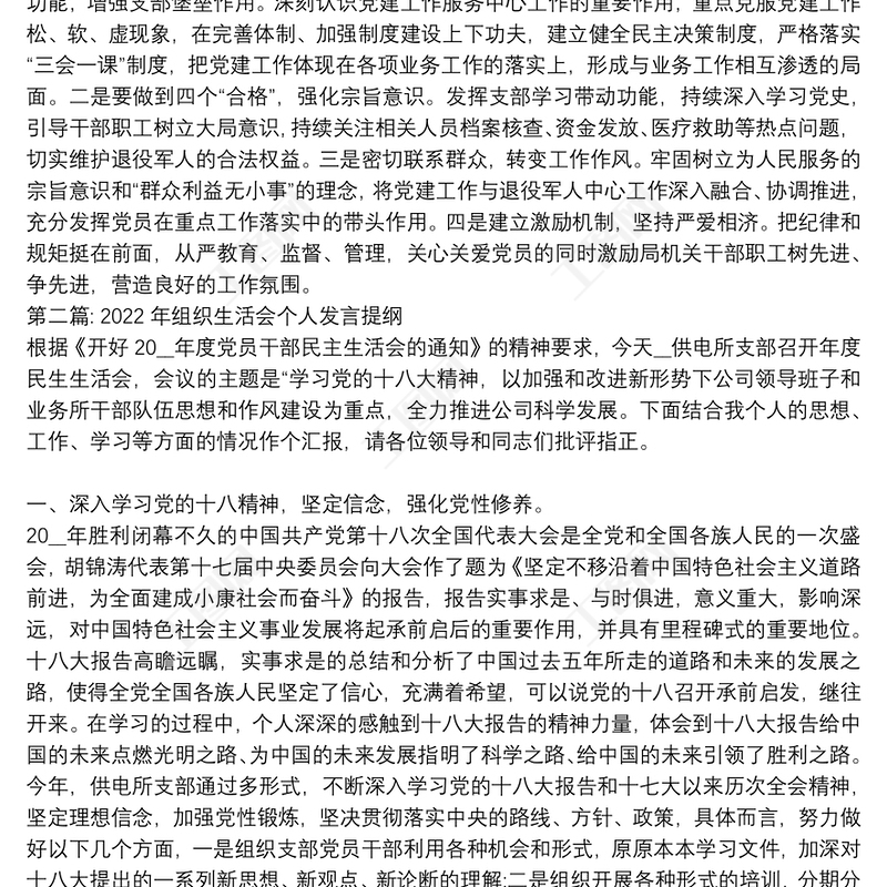 2022年組織生活會(huì)個(gè)人發(fā)言提綱11篇