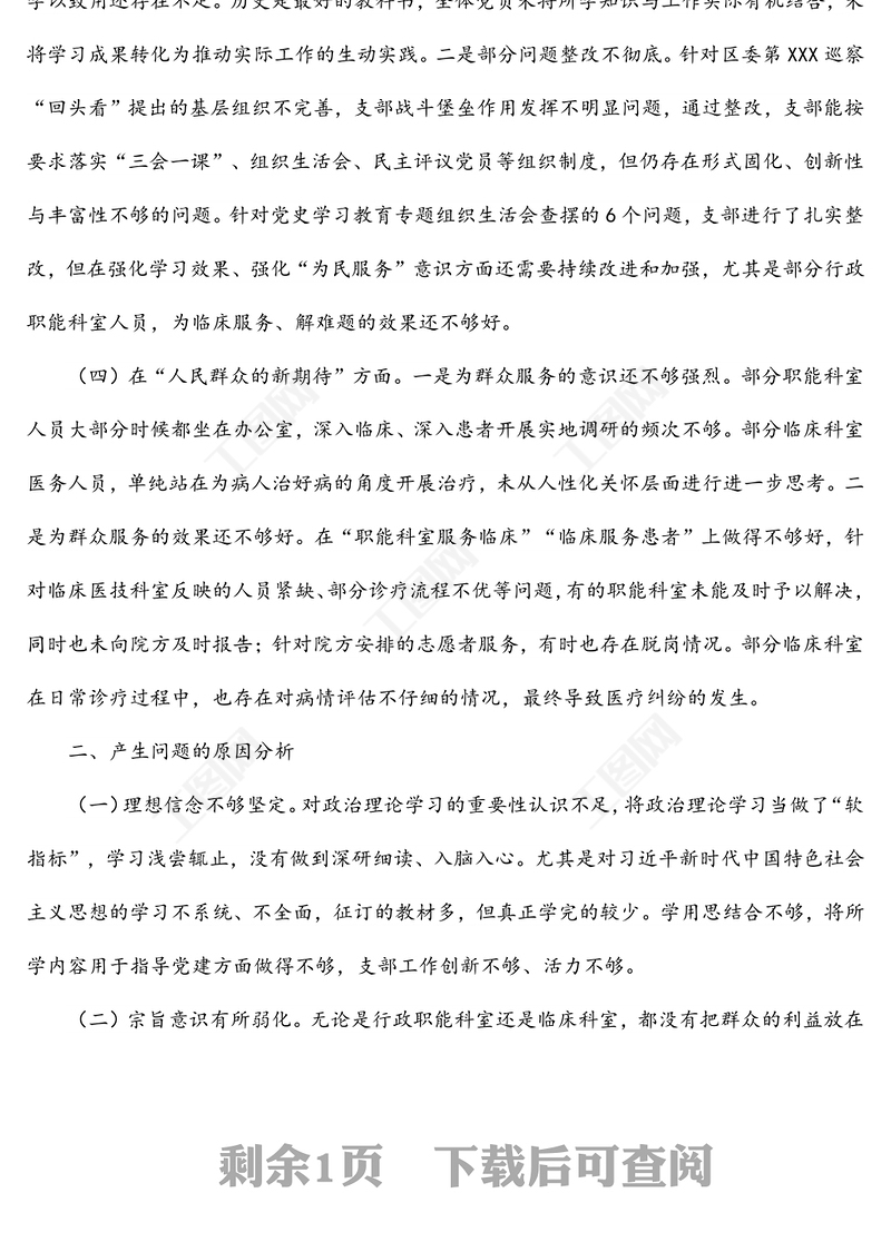工圖網(wǎng)提供醫(yī)院黨支部2021年度組織生活會班子對照檢查材料供會員免費下載。更多精彩黨課PPT素材,盡在工圖網(wǎng)。