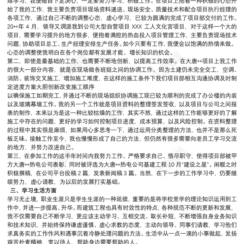 2021項(xiàng)目部員工見(jiàn)習(xí)期個(gè)人工作總結(jié)