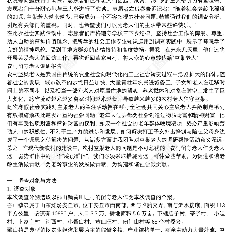 2021留守老人生活現(xiàn)狀調(diào)研報告包含