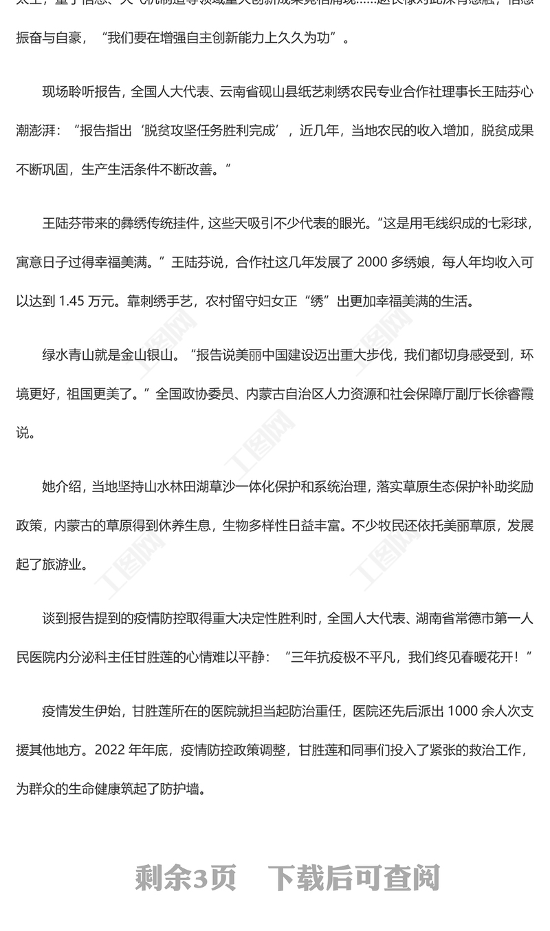 工圖網(wǎng)提供偉大成就來之不易 接續(xù)奮斗譜寫新篇——代表委員審議討論政府工作報告供會員免費下載。更多精彩黨課PPT素材,盡在工圖網(wǎng)。