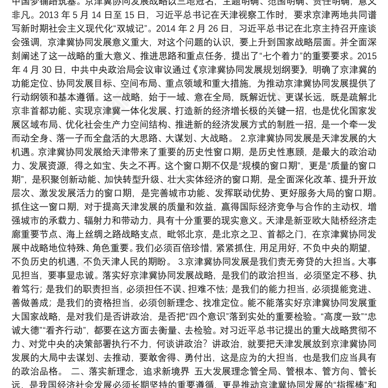以五大發(fā)展理念為統(tǒng)領(lǐng) 全力推動(dòng)京津冀協(xié)同發(fā)展