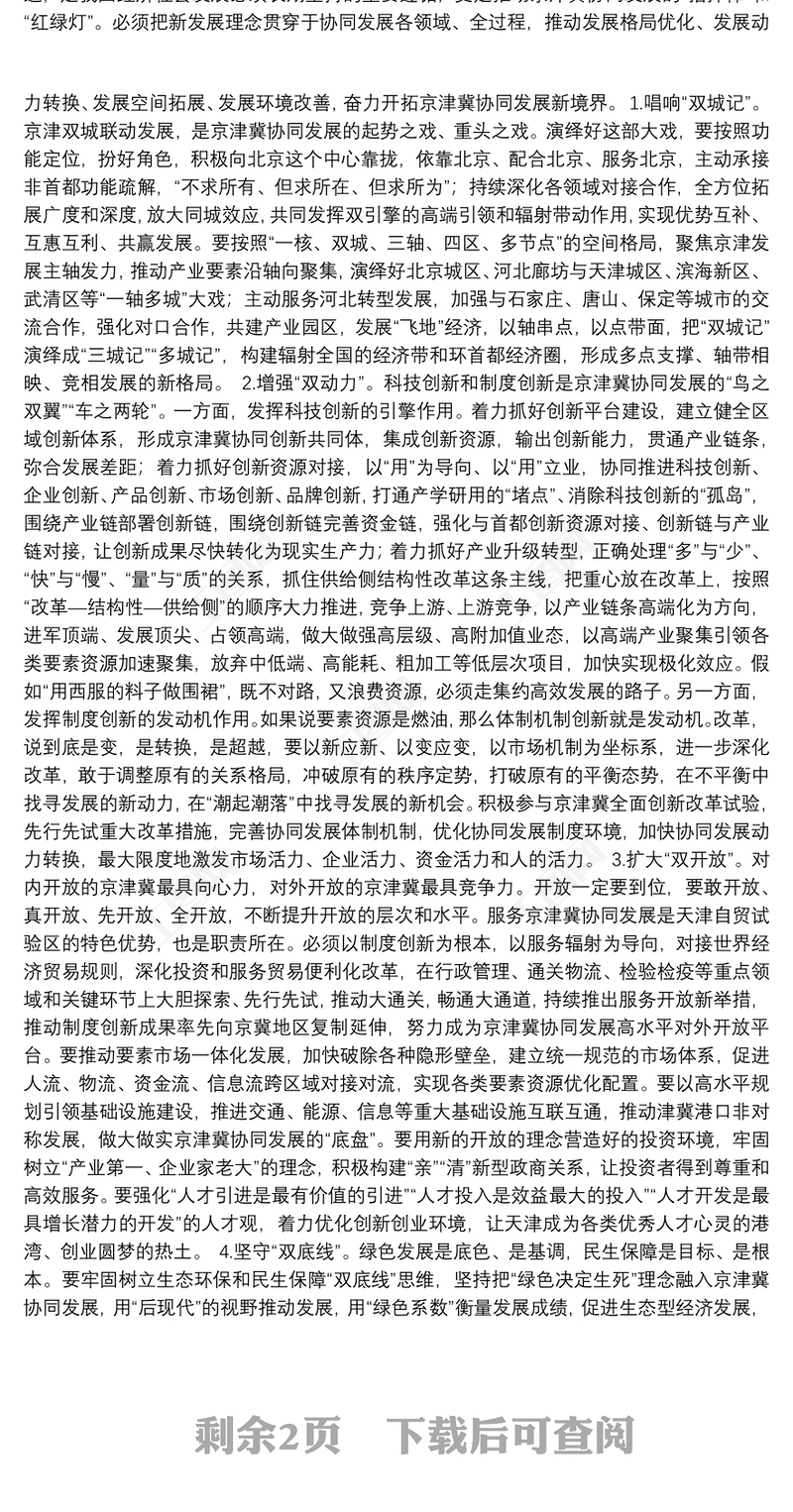 > 公文范文 > 以五大發(fā)展理念為統(tǒng)領(lǐng) 全力推動(dòng)京津冀協(xié)同發(fā)展.DOCX 【圖片、文字、動(dòng)畫均可編輯】