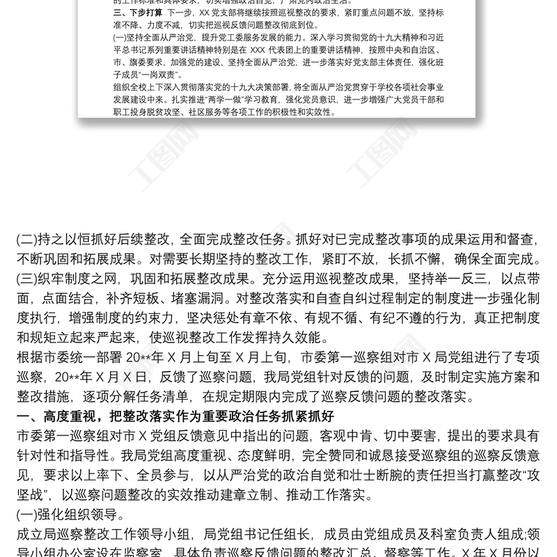 工圖網(wǎng)提供黨支部關(guān)于反饋問(wèn)題整改落實(shí)、自查自糾工作情況報(bào)告供會(huì)員免費(fèi)下載。更多精彩黨課PPT素材,盡在工圖網(wǎng)。