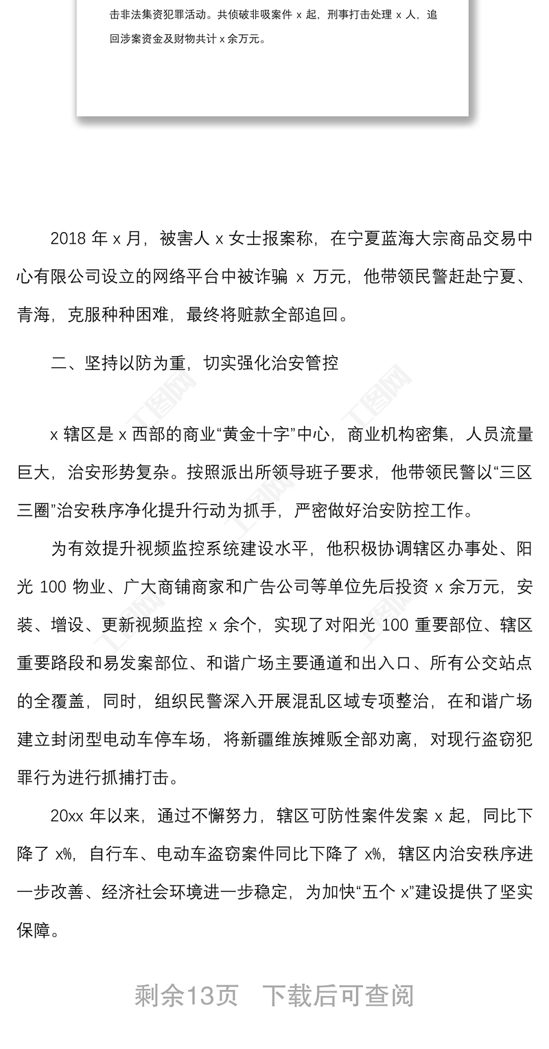 > 經(jīng)驗事跡 > 4篇個人事跡公安局民警平安建設(shè)先進(jìn)個人事跡材料范文4篇派出所警察干警社區(qū)基層民警.DOCX 【圖片、文字、動畫均可編輯】