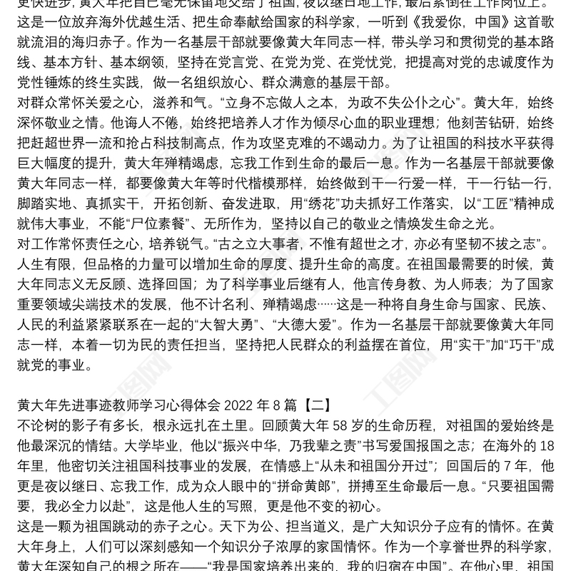工圖網(wǎng)提供黃大年先進(jìn)事跡教師學(xué)習(xí)心得體會(huì)2022年8篇供會(huì)員免費(fèi)下載。更多精彩黨課PPT素材,盡在工圖網(wǎng)。