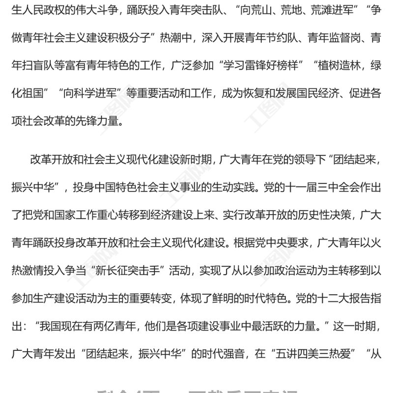 > 黨課講稿 > 中國(guó)共產(chǎn)黨領(lǐng)導(dǎo)百年青年運(yùn)動(dòng)的光輝歷程黨員干部學(xué)習(xí)教育.DOCX 【圖片、文字、動(dòng)畫均可編輯】