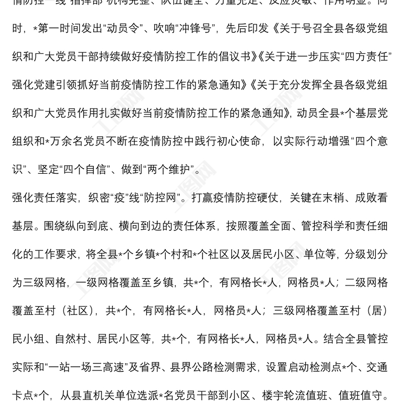 工圖網(wǎng)提供縣區(qū)黨建引領疫情防控典型經(jīng)驗材料供會員免費下載。更多精彩黨課PPT素材,盡在工圖網(wǎng)。