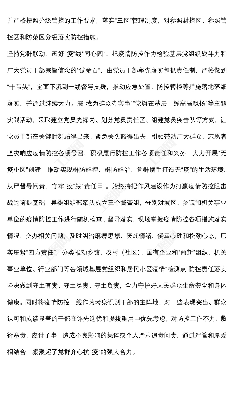 縣區(qū)黨建引領疫情防控典型經(jīng)驗材料