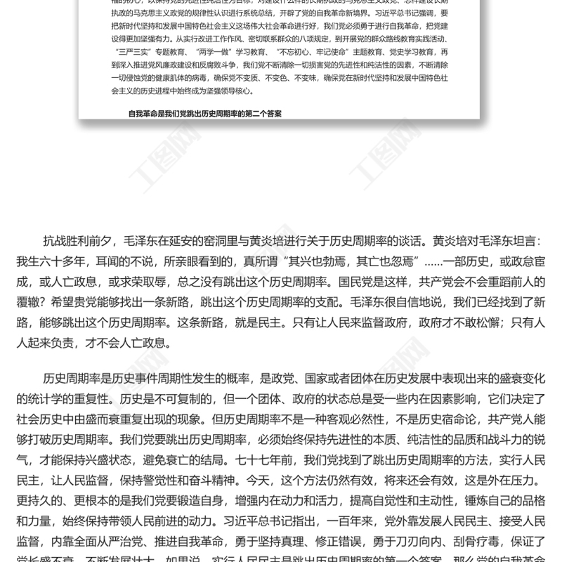 工圖網(wǎng)提供依靠黨的自我革命跳出歷史周期率 黨員干部學(xué)習(xí)教育專題黨課演講稿供會(huì)員免費(fèi)下載。更多精彩黨課PPT素材,盡在工圖網(wǎng)。
