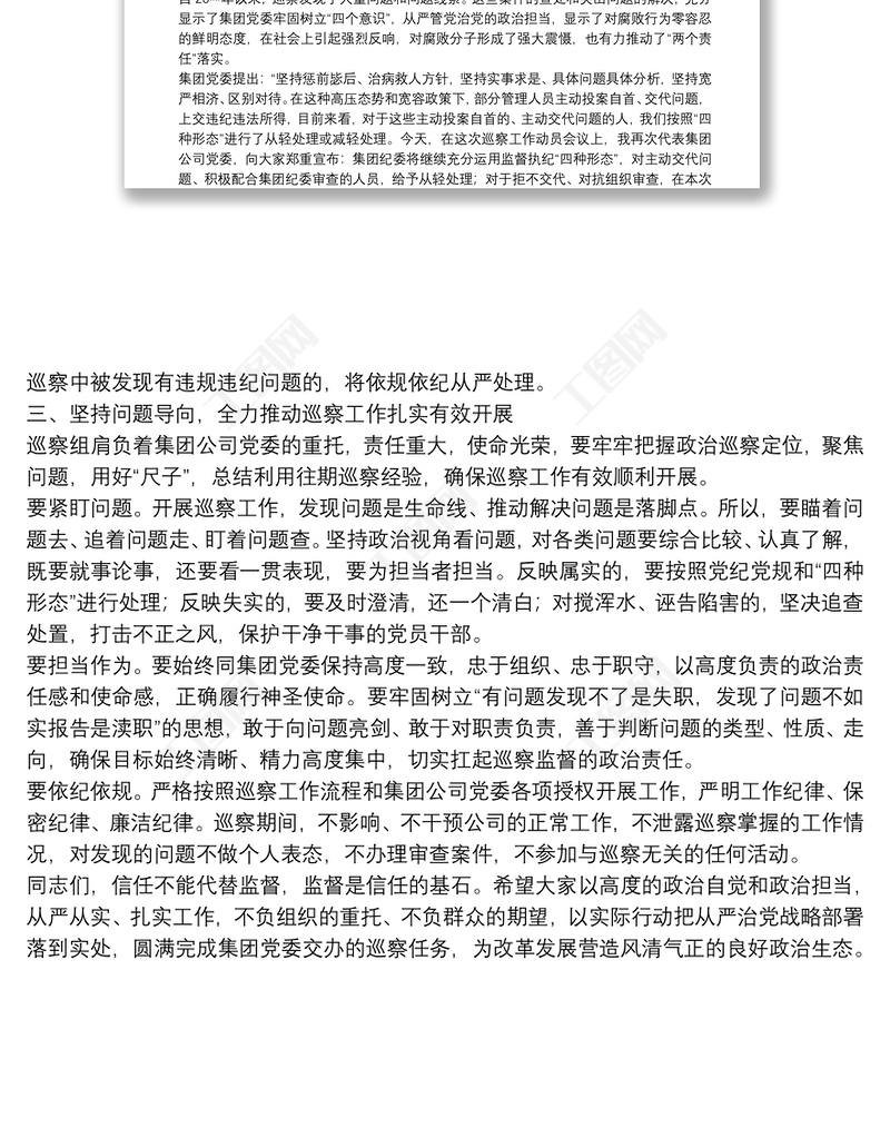 在集團公司黨委巡察分公司黨委工作動員會上的講話 Array