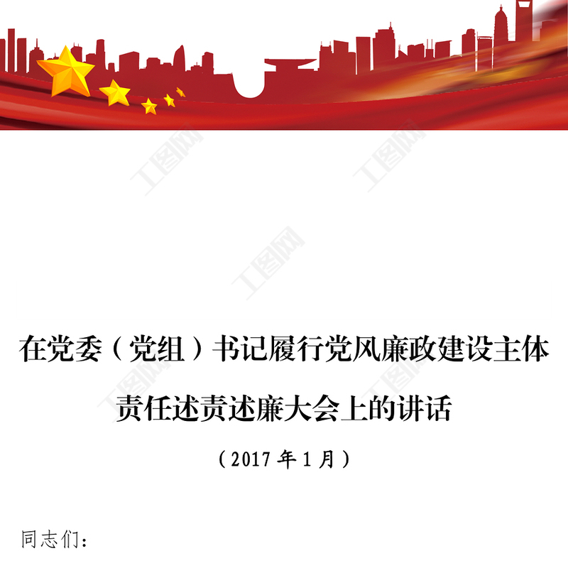 工圖網(wǎng)提供在黨委(黨組)書記履行黨風廉政建設主體責任述責述廉大會上的講話供會員免費下載。更多精彩黨課PPT素材,盡在工圖網(wǎng)。