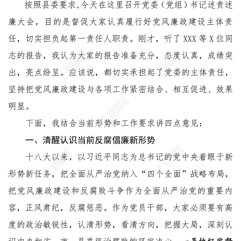 首頁 > WORD文檔 > 黨風廉政 > 在黨委(黨組)書記履行黨風廉政建設主體責任述責述廉大會上的講話.DOCX 【圖片、文字、動畫均可編輯】