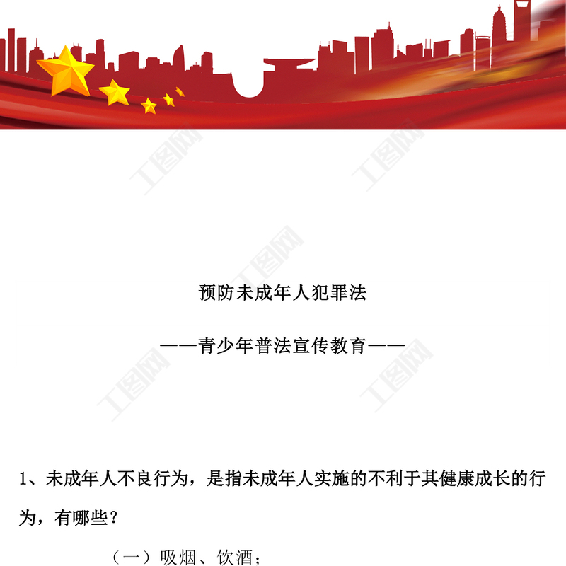 工圖網(wǎng)提供2025預(yù)防未成年人犯罪法PPT青少年普法宣傳教育課件(講稿)供會(huì)員免費(fèi)下載。更多精彩黨課PPT素材,盡在工圖網(wǎng)。