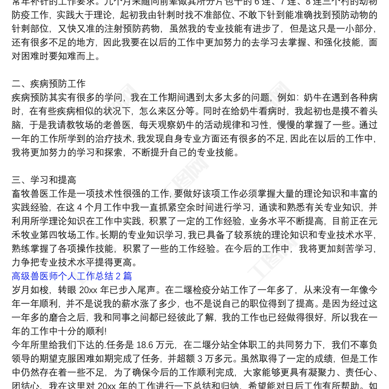 工圖網(wǎng)提供高級(jí)獸醫(yī)師個(gè)人工作總結(jié)3篇供會(huì)員免費(fèi)下載。更多精彩黨課PPT素材,盡在工圖網(wǎng)。