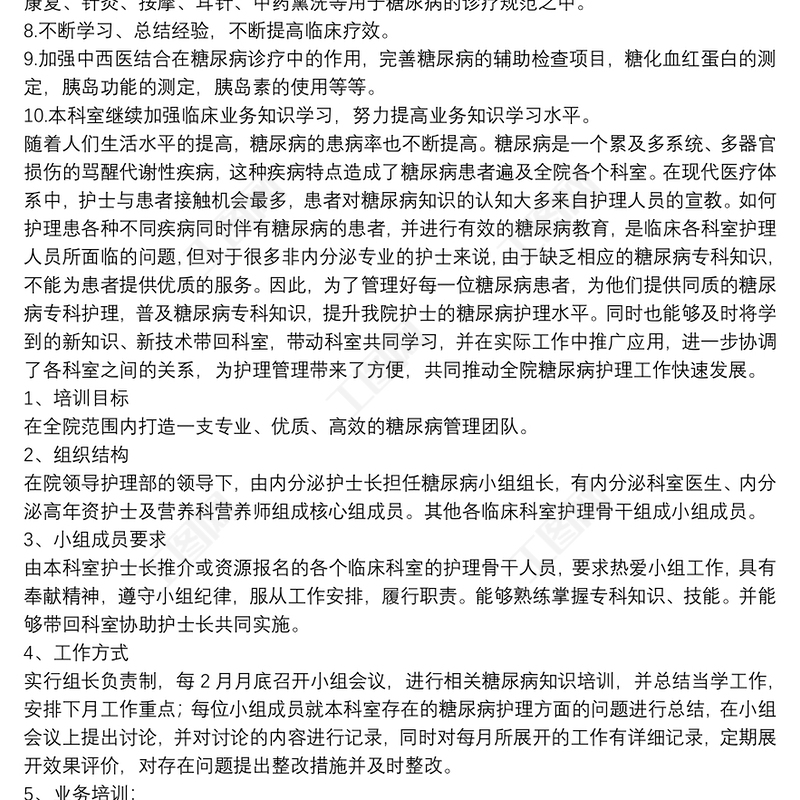 糖尿病小組工作計(jì)劃