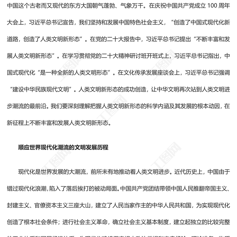 > 黨課講稿 > 不斷豐富和發(fā)展人類文明新形態(tài)ppt簡約黨政風中華民族現(xiàn)代文明發(fā)展主題教育微黨課(講稿).DOCX 【圖片、文字、動畫均可編輯】