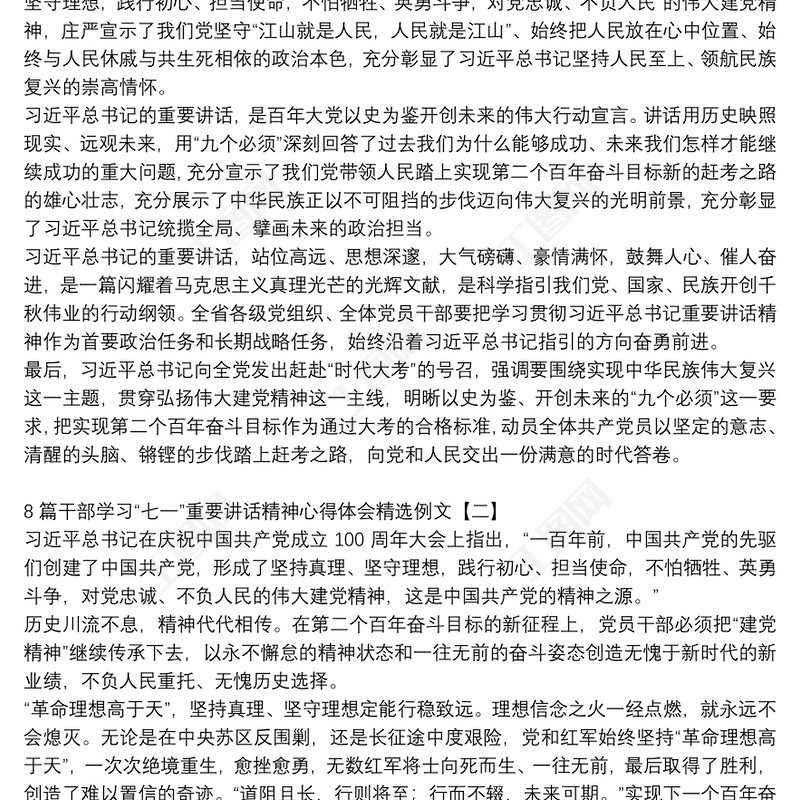 工圖網(wǎng)提供8篇干部學(xué)習(xí)“七一”重要講話精神心得體會精選例文供會員免費下載。更多精彩黨課PPT素材,盡在工圖網(wǎng)。