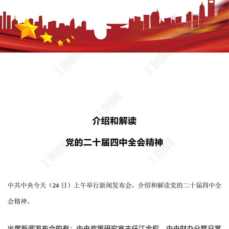 工圖網(wǎng)提供介紹與解讀二十屆四中全會精神PPT黨課課件(講稿)供會員免費下載。更多精彩黨課PPT素材,盡在工圖網(wǎng)。